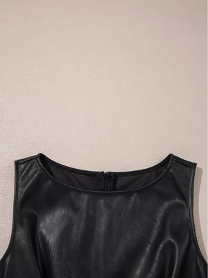 Black Vegan Leather Sleeveless Mini Dress