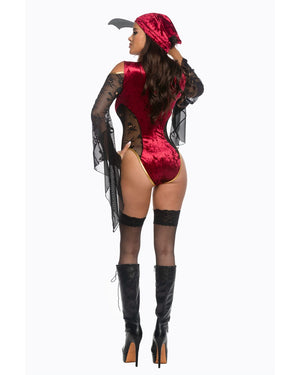 Red Velvet & Black Fishnet Treasure Tease Knit Romper Cosplay Costume – 3pc Treasure Chest Tease