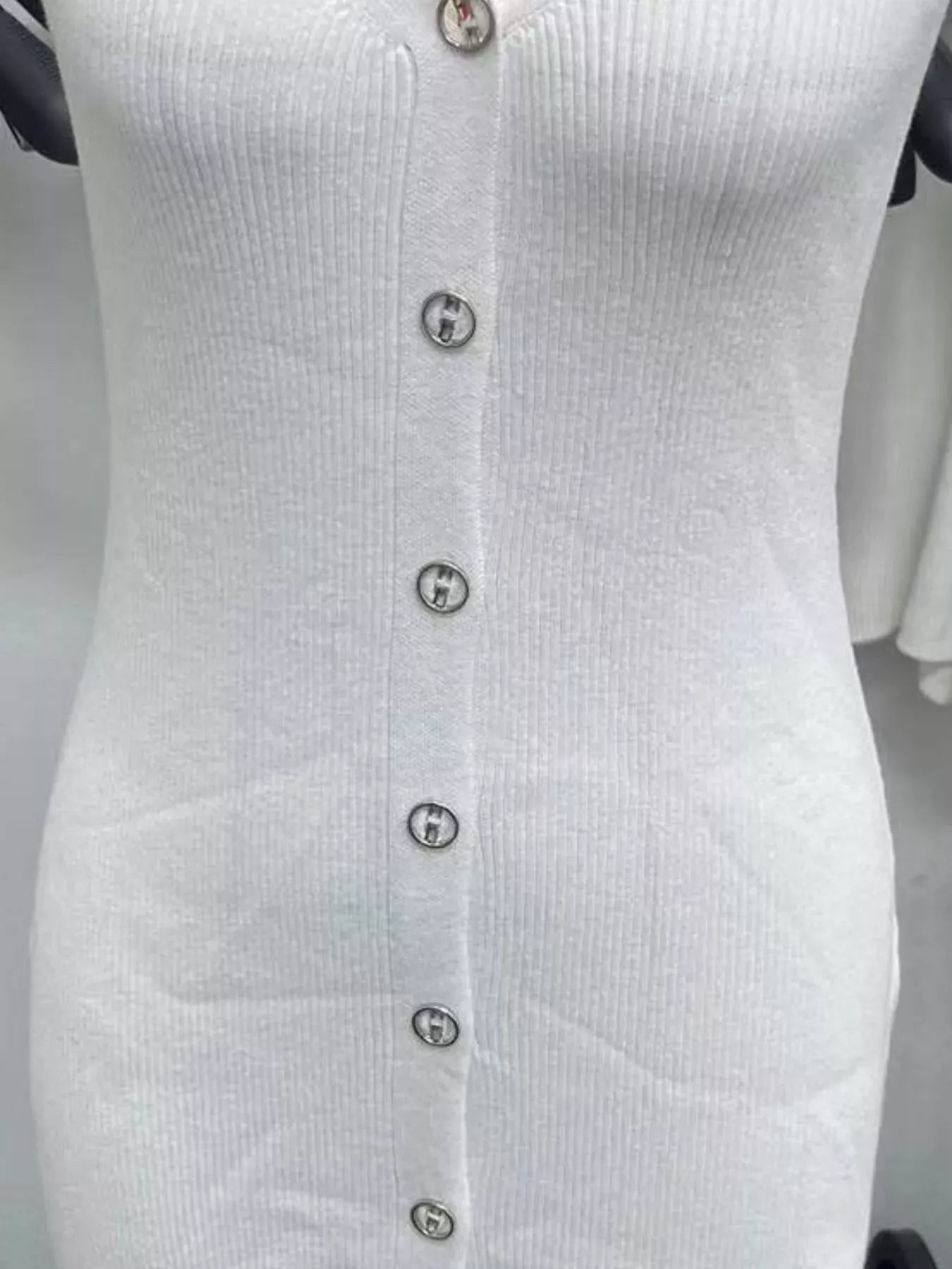 Black Halter Neck Button-Front Bodycon Dress