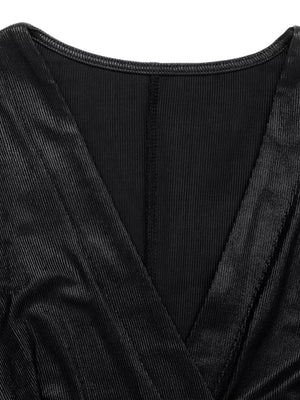 Black Surplice Long Sleeve Midi Dress